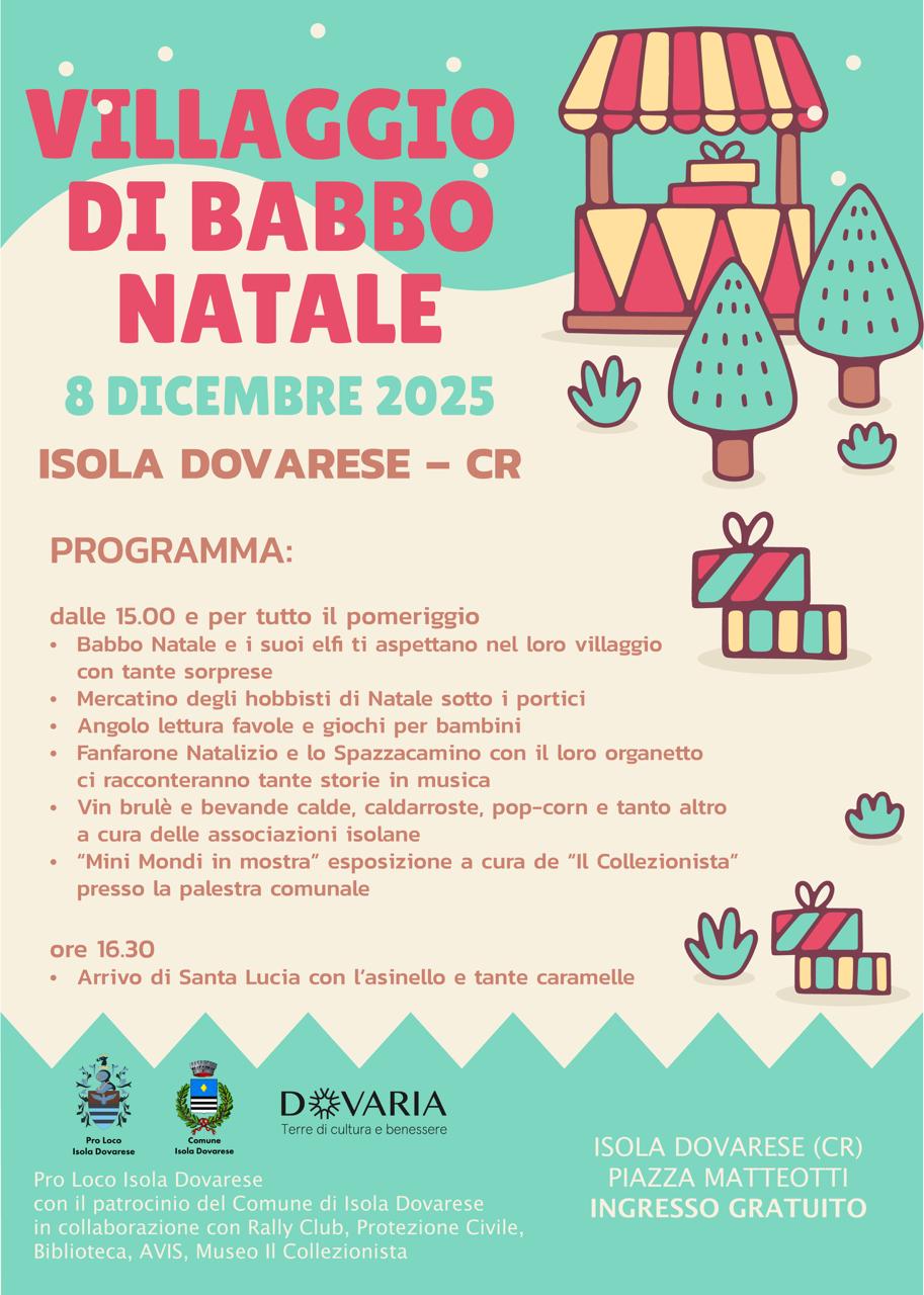 L’8 dicembre, a partire dalle ore 15:00, il cuore di Isola Dovarese si trasformerà in un incantevole villaggio di Natale, grazie all’organizzazione della Pro Loco.